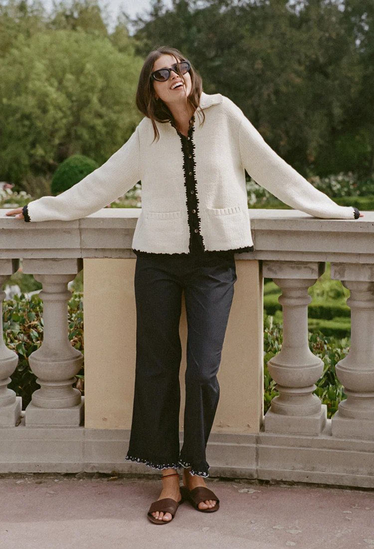 The Kaja Pant in Black Cotton Voile features a side zip and a fluttery ruffle detail at the bottom hemline. Meant to sit at your natural waist with a slightly flared leg opening, this super flattering fit makes the Kaja the perfect pant for any outing. Pair her with our Reyla Knit Jacket and our